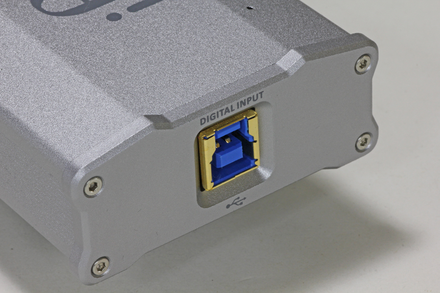 こちら、“ライト・エディション”と名付けられているとおり、オリジナル「nano iDSD」から同軸デジタル出力やDSD11.2MHz対応など、いくつかの機能を省くことでロープライス化を実現したモデル。基本的な部分は変わらず、ハイレゾ音源もリニアPCMで384kHz/32bit、DSDで5.6MHzまで対応と、現在流通しているハイレゾ音源はおおよそ大丈夫。それでいて、2.7万円前後のオリジナルに対して1.7万円前後という低価格さを実現しているのだから、コストパフォーマンス的にはなかなかのものといえる。ちなみにボディカラーは、メーカーがチタンブラックと呼ぶ、濃いめのシルバーを採用する。