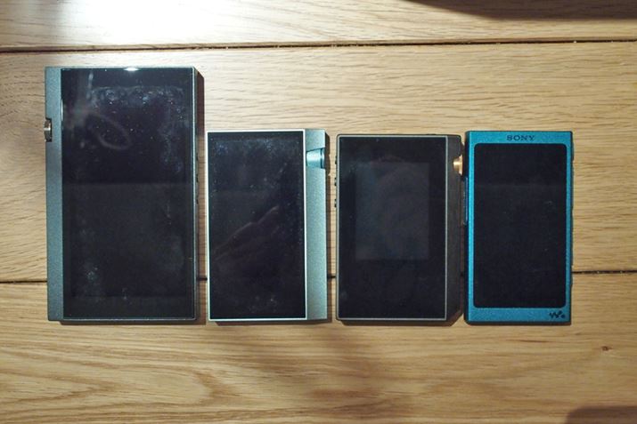 他のハイレゾ対応DAPと大きさを比較したところ。XDP-30Rは、ソニー「ウォークマン NW-A30」とiriver「AK70」の間くらいの大きさとなっている。オンキヨー「DP-X1」に比べるとかなり小さくなっていることがおわかりいただけるはずだ