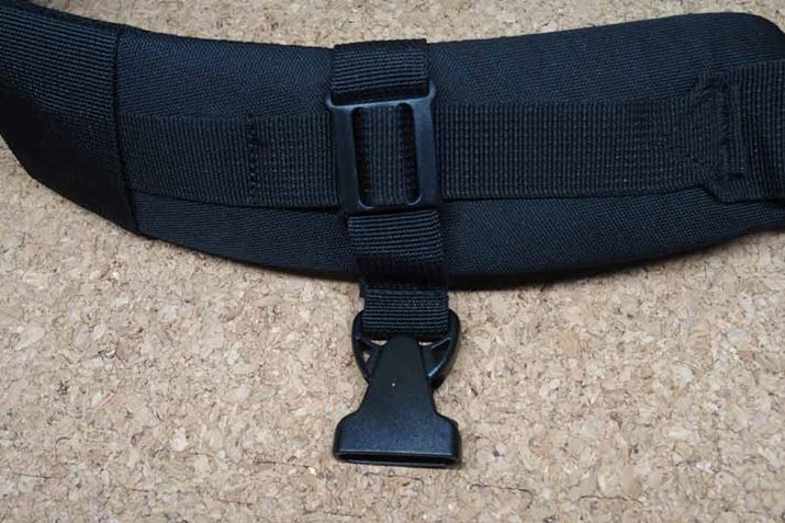 メインのベルトのほかにサブのストラップがついており、バッグを安定させることができます。またストラップは簡単に着脱可能