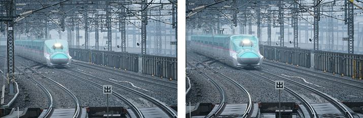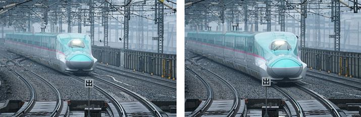 ホームに入ってくる新幹線を11コマ/秒連写で追従撮影し、計40枚撮影。フォーカスエリアはワイドに設定したが、ピントはすべて先頭車両に合っていた。AFの性能についてはα6300とα6500に明確な差はなく、どちらも高速で追従性もすぐれている。