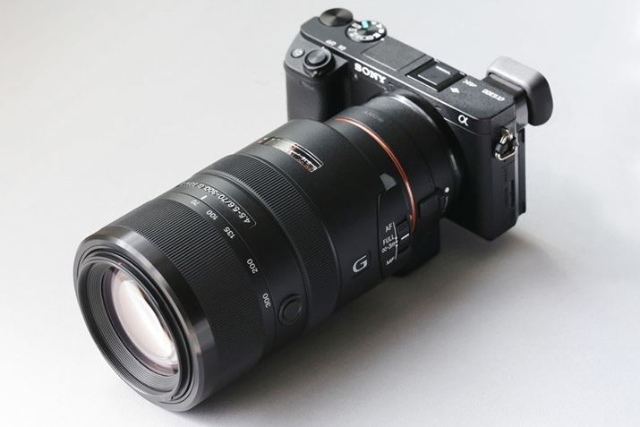 純正のマウントアダプター LA-EA3を使ってAマウント用レンズの70-300mm F4.5-5.6 G SSM IIをα6500に装着したイメージ。α6500はボディ内手ブレ補正によってAマウント用レンズでも手ブレを抑えて撮ることができる