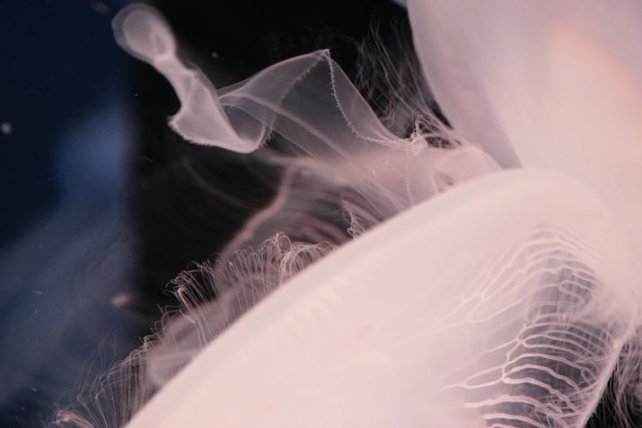Aマウント用レンズ70-300mm F4.5-5.6 G SSM IIを使用。焦点距離300mm(35mm判換算450mm)でクラゲを大きく撮っている。シャッタースピードが1/40秒なのでわずかに被写体ブレはあるものの手ブレは補正できている