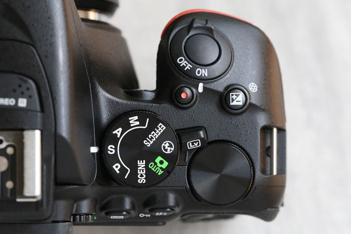 D5600ではカメラ上面にある撮影モードダイヤルを「S」の位置にします