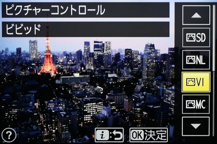 ニコンの仕上がり設定は「ピクチャーコントロール」です。「ビビッド」や「風景」を選択すると夜景が色鮮やかに仕上がります