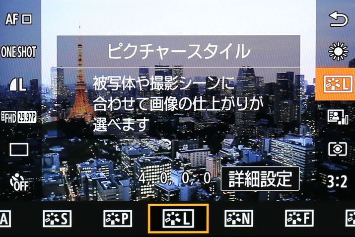 キヤノンの仕上がり設定は「ピクチャースタイル」です。ビビッドな仕上がりとしては「風景」が用意されています