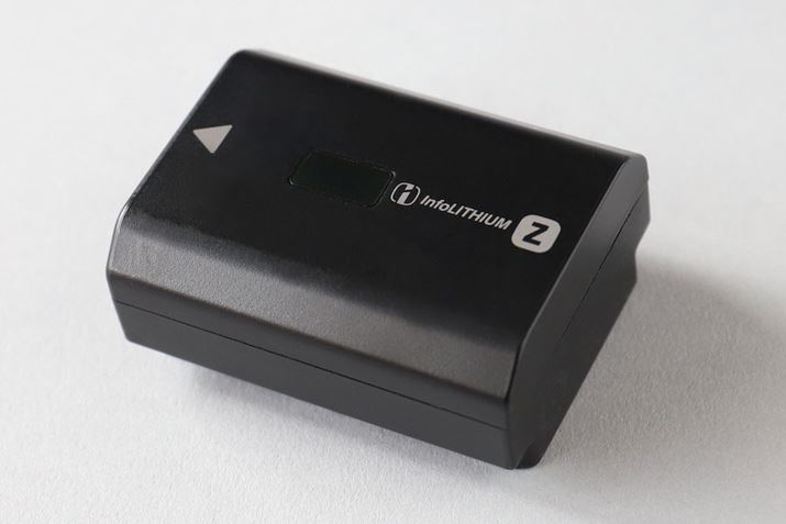 新開発のZバッテリー「NP-FZ100」を採用。Wバッテリー「NP-FW50」と比べて2.2倍の容量(2280mAh)となるバッテリーで、撮影可能枚数は電子ビューファインダー撮影時で約480枚、液晶モニター撮影時で約650枚となっている