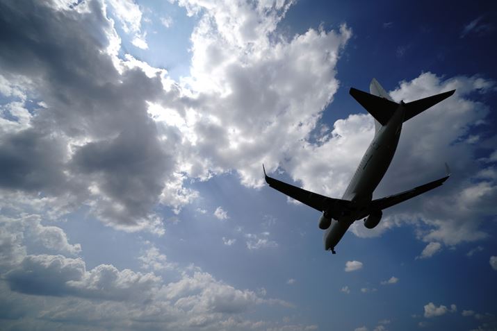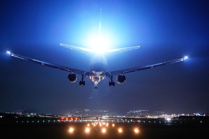 日没後1時間程度経過したころに、大口径の標準レンズ「Planar T* FE 50mm F1.4 ZA」を使って20コマ/秒連写で撮影した作例。この作例では画面に飛行機が入ってきた瞬間にAFを動作させて連写しているが、尾灯がついた瞬間を収めることができた