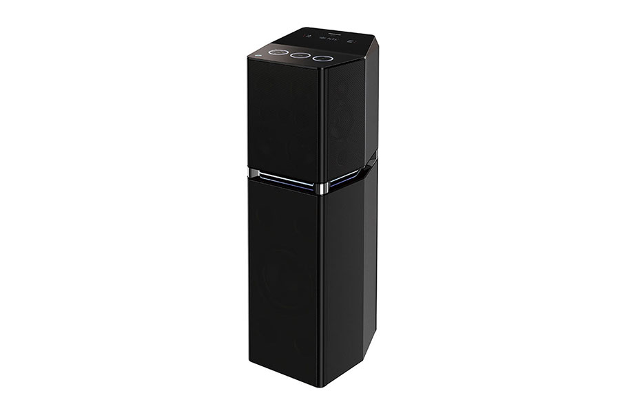 合計10基のスピーカーと1100W出力のアンプを内蔵し、大音量を実現したワイヤレススピーカーシステム。中高域と低域のスピーカーボックスを分割し、最大音量でも高品位な低音を再生することが可能だ。