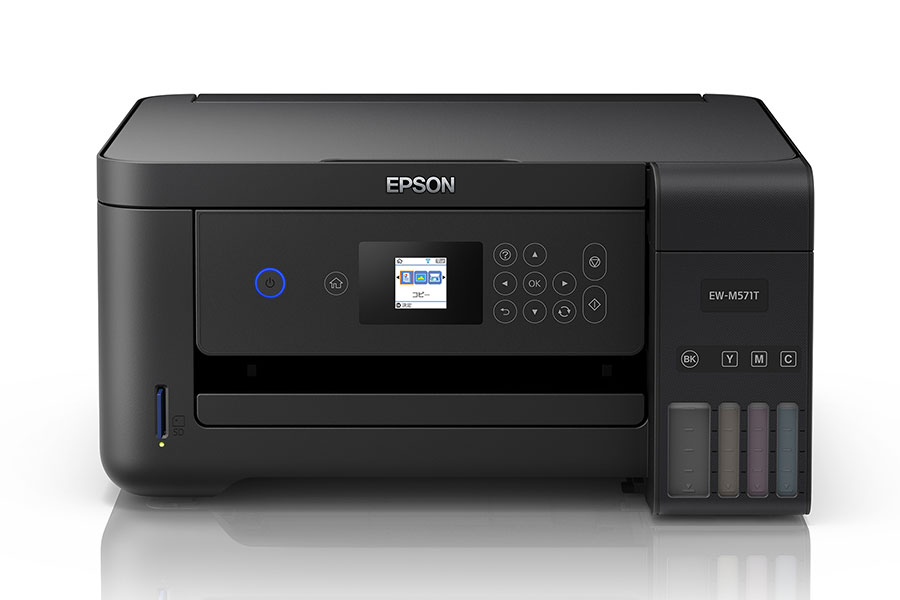 なお、従来モデル「EP-M570T」(445×169×304mm)より幅を70mm縮小し、本体サイズは375(幅)×187(高さ)×347(奥行)mmを実現。1枚あたりの印刷コストがA4カラー文書で約0.9円、1回のインク交換で印刷できる枚数がカラーインクで約6000ページ。解像度が最高5760×1440dpi。