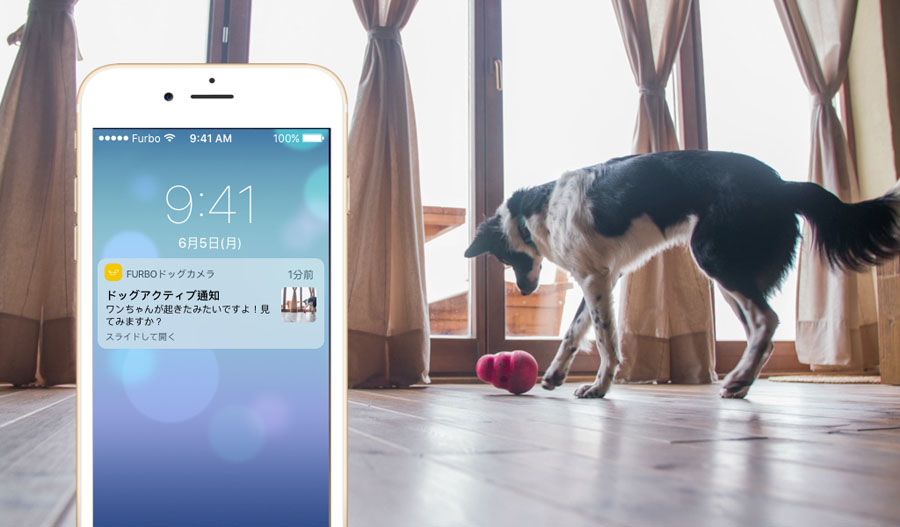 3種類の通知が用意されており、ひとつは「Furbo」が近づいてきた愛犬を認識し、自動で撮影を行ってスマートフォンにプッシュ通知する「ドッグセルフィー通知」。愛犬がおやつを欲しいときや、かまってほしいときを認識して、ユーザーにお知らせ。通知を受け取ったユーザーは、スマートフォンの専用アプリから映像を確認しつつ、話しかけたり、おやつをあげたりして、外出先からでもコミュニケーションをとることができます。