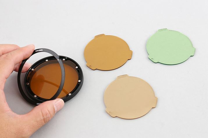 カラーフィルターキットは、CTO(オレンジ)3枚(1/1〜1/4)、グリーン1枚の4枚セット。タングステン照明下や蛍光灯下などでの撮影の際に、ストロボのカラーバランスを調整したいときに便利だ。フィルダーをホルダーに挟んでA1のヘッドに装着して使用する。別売オプションで価格は12,800円(税別)