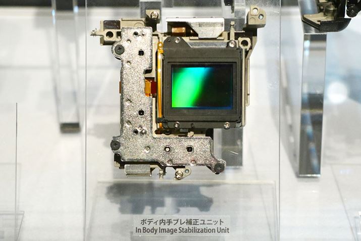 3軸加速度センサー、3軸ジャイロセンサー、専用デュアルプロセッサーにより、5軸手ブレ補正を実現。平滑性±0.05ミクロン以内の鏡面加工ステンレス、直径±0.3%以内のセラミックボールなど、手ブレ補正機構は厳格な製造されている。アクチュエータも高トルクのものを採用。シャッター駆動時の振動を抑制するショックアブソーバー(スプリング)なども備える