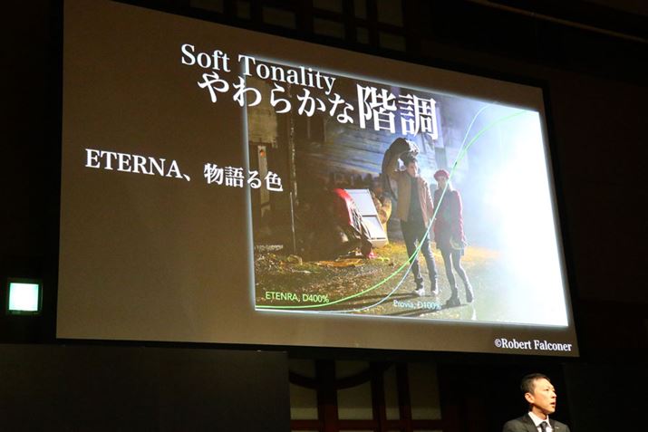 映画用フィルムの色と階調を再現したETERNA。明暗差の許容範囲を拡げる「ダイナミックレンジ400%(約12段相当)」と併用することにより、完成度の高い映像の収録が可能となるという。動画だけでなく、静止画でも利用できる