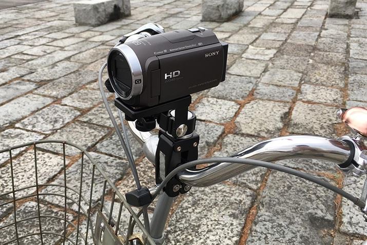 テストの様子。自転車のフレームにビデオカメラを取り付けてデコボコな石畳の上を走行した。縦方向にガタガタゆれた