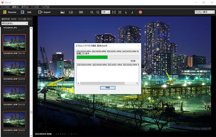 ピクセルシフトマルチ撮影で撮影したRAWデータの合成は、Imaging Edge上で行う。Imaging Edgeの「Viewer」でピクセルシフトマルチ撮影したRAW画像を選択し、メニューから合成を選べばいい
