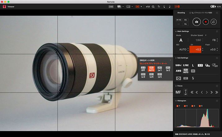 Imaging Edgeの「Remote」を使ってテザー撮影を行っている画面。PCの画面上でライブビュー映像を見ながら各種設定を調整できる。テザーでのピクセルシフトマルチ撮影も可能で、撮影が終わると自動的に合成RAWデータが生成される。機能面では、テザー撮影中でもPCとカメラ本体の両方に静止画を保存できるようになったほか、RAW+JPEG記録時にはPC側にJPEGのみを転送する設定も追加された