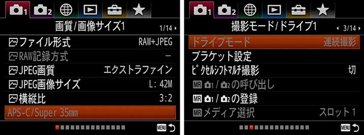 書き込み中は、メニューを表示できるものの、撮影画角(35mm/APS-C)やドライブモードなどの一部機能はグレー表示になり呼び出すことができない。Fnメニューやカスタムキーに登録しても同じだ