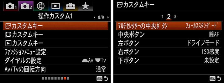 操作性では、AFが使いやすくなるような改善が施されたのがトピック。α9と同様、フォーカス枠をダイレクトに移動できるマルチセレクターを装備したほか、AF-ONボタンも追加。タッチ感度にやや難はあるものの、液晶モニターがタッチパネルに対応し、タッチフォーカスやタッチパッドを利用できるようになったのもポイントだ。また、設定方法は少々わかりにくいが、フォーカス枠をあらかじめ登録した位置に一時的に移動できる「フォーカスエリア登録」とカスタムキーを組み合わせることで、2種類のフォーカスエリアをボタン操作で瞬時に使い分けられるのも便利なところ。