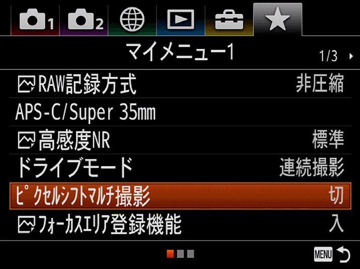 カスタマイズ機能では、最大30個のメニュー項目を登録できる「マイメニュー登録機能」が追加されたことも押さえておこう。α7R IIIだけでなくα7シリーズのメニュー画面そのものは、機能が多いこともあってやや煩雑な印象。機能が機械的に分類されていることもあってけっして使いやすいとは言えないが、マイメニュー登録機能を使えば、使用頻度の高い機能に絞った専用のメニューを作ることができる。