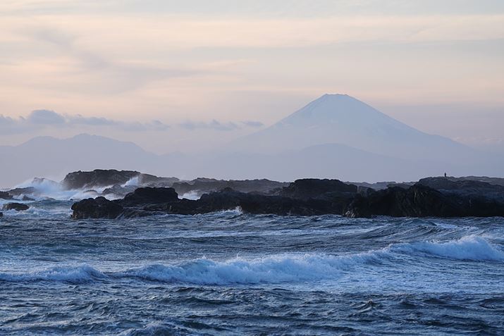 ISO1000でJPEG撮影した1枚。注目してほしいのは、ピントを合わせた岩場あたりの描写だ。岩肌、打ち上がる波しぶき、海面の波などのディテールの再現性が高く、非常にリアリティのある描写になっている。日没直前の空に薄く雲が覆った状況だったため光の量が少なかったのだが、それでも、ISO1000の高感度でここまでディテールが出るのはすごい