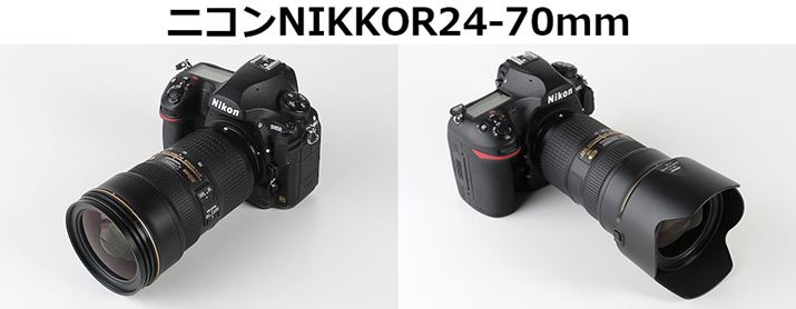 ED非球面レンズを採用するなど高い光学性能を実現したニコンNIKKOR24-70mm(カメラボディはD850)。付属フードはレンズ先端ではなく鏡筒部に取り付けるようになっており、フードをつけた状態でズーミングしても見た目の全長は変わらない