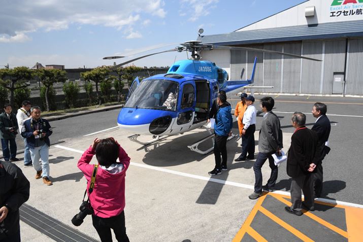 集合場所はエクセル航空が管理する浦安ヘリポート。ここから空撮用のヘリコプターが飛ぶ