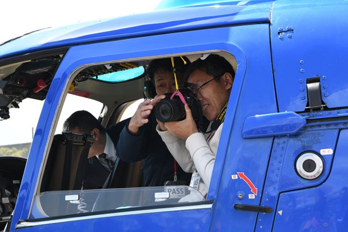 そしていよいよ撮影ツアーが開始。昼の部は、参加者や加藤先生が搭乗する後部座席ではなく、パイロットの脇の席から取材させていただいた。