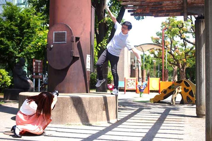 米田「今回の撮影では不安定なところに立ってもらうときに使いました。下からあおって撮ると、ダイナミックでマンガっぽいパースがついておもしろいです」