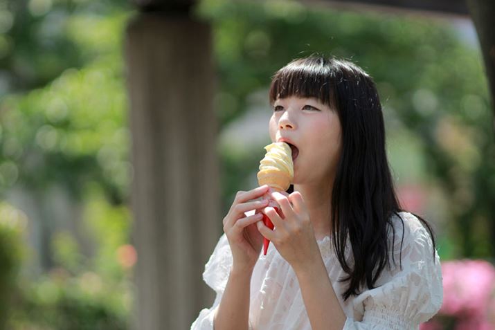 「甘い物」で表情がゆるんでいるのもいいですが、ソフトクリームみたいな小さくて壊れやすい物をそっと持っている仕草もいいですよね。これは期待できるコツかもしれない。