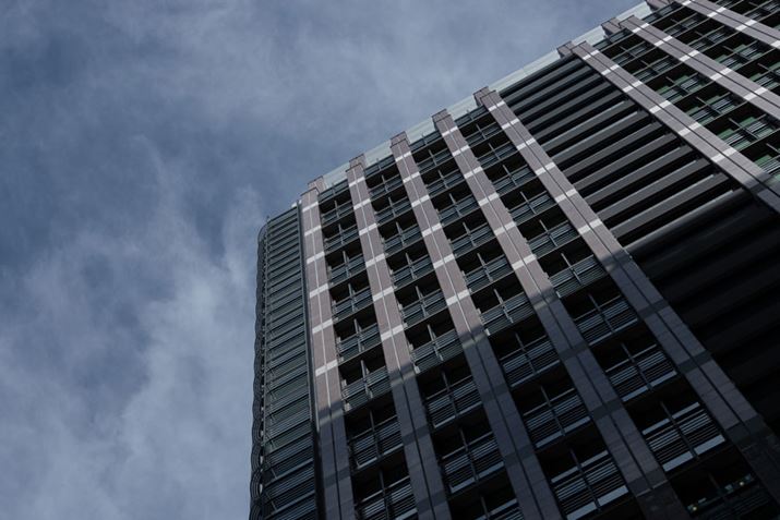 晴天時にビル街で撮影。適度に絞り込んで撮ったショットだが、画面周辺部までコンクリの質感が失われない解像力の高さに満足した