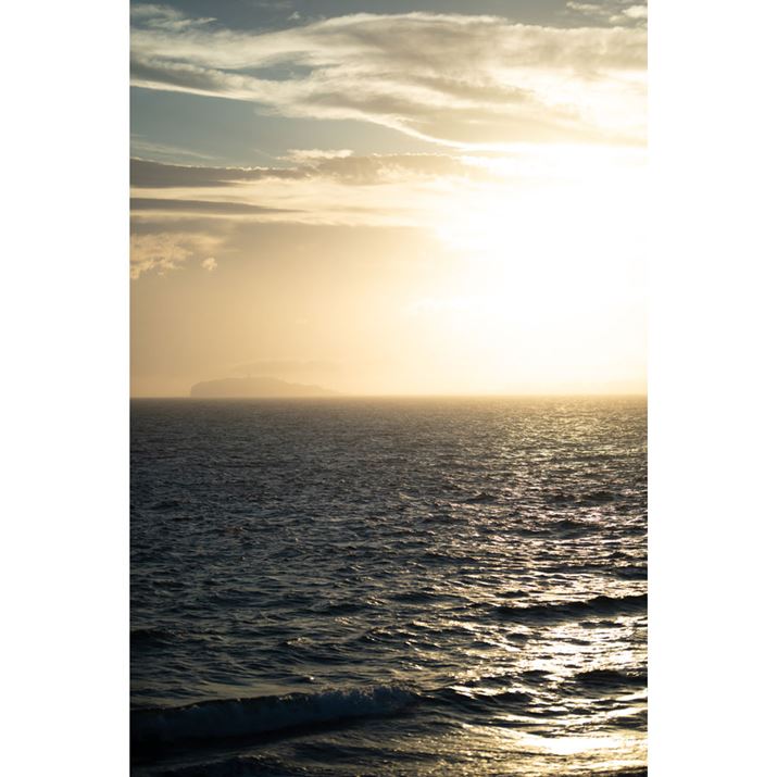 海に落ちる夕陽を撮影。絞り開放1/8000という極端な設定での撮影だが、画面に太陽を直接入れた条件でもコントラストの高い描写が実現できた