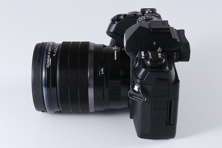 最大径68.2×全長87mmで重量は390g。OM-D E-M1 Mark IIに装着する限りでは、ちょうどいいサイズ感の単焦点レンズとなる。側面には、左手親指で押しやすい位置にL-Fnボタンが用意されている