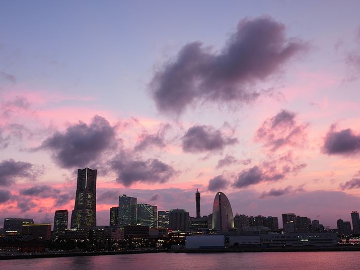 日没後に北西方向を撮影した1枚。絞り値はF4.5。画像周辺の強い光源部分でコマ収差や色ずれが見られるのが少し気になるが、全体的にはコントラストが高く、抜けのよい描写となった