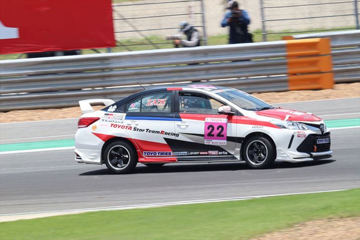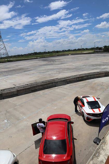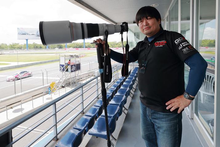 タイのSUPER GTの舞台となるチャン・インターナショナル・サーキットでは、撮影エリアとコースが比較的近い場所もあるので、「EF-S15-85mm F3.5-5.6 IS USM」で撮影できそうなエリアで撮ってみました。4.0コマ/秒だと、EVF内のブラックアウトの時間が長くて被写体を追いづらい場面もありますが、少しワイドめにフレーミングをし、後からトリミングすることで写真として完成させることもできます。これは、2,410万画素という解像度に余裕があってこそできることです。