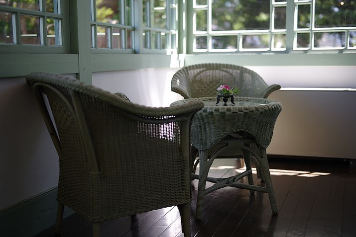 ガラスの机の表面に映り込む光の形が崩れないようにF4まで絞って撮影した1枚
