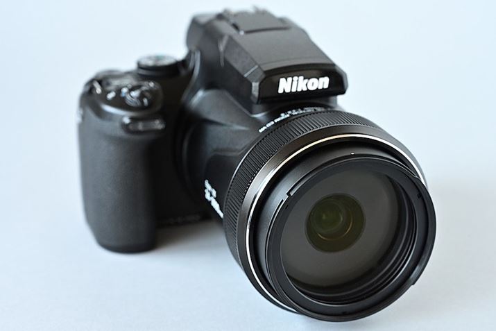 35mm判換算で広角端24mm相当(開放F2.8)〜望遠端3000mm相当(開放F8)の画角に対応する光学125倍ズームの「NIKKORレンズ」を搭載。スーパーEDレンズ1枚、EDレンズ5枚を採用し、超望遠でも解像感の高い描写を実現した。最短撮影距離(レンズ先端から)は広角側で約30cm、望遠側で約7.0m。マクロAF時は広角端で約1cmまで被写体に近づける。レンズ先端には77mm径のフィルターの装着が可能
