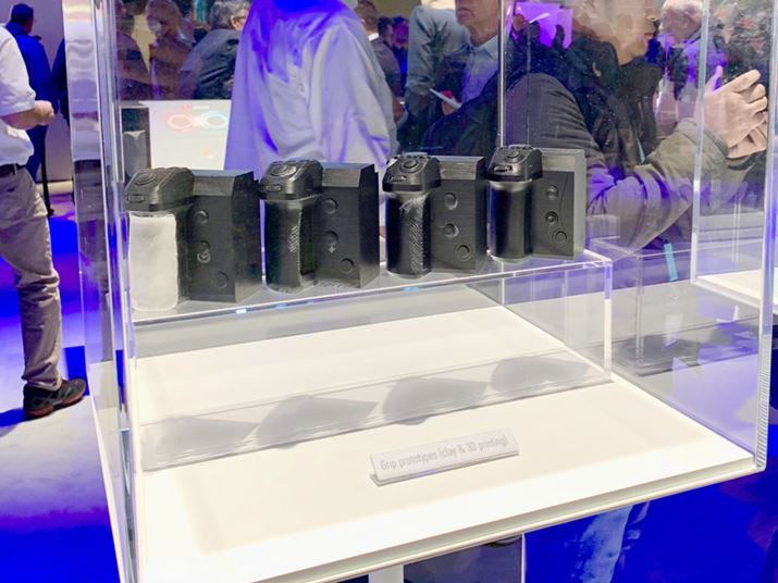 3Dプリンターで作られた、グリップのモックアップ。どのような試作が行なわれて、現在の形に落ち着いたのかがうかがい知れます