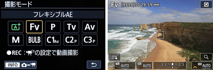 Fvモードは、シャッタースピード、絞り値、感度の値を任意に設定できる新しい露出モード。撮影モードを切り替えなくても露出の変更を自由に行える