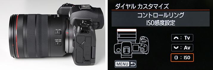 EOS R用の新しい「RFレンズ」には、クリック感のあるコントロールダイヤルが搭載されている。EOS Rでは、このダイヤルを含めて計3つのダイヤルに、絞り、シャッタースピード、感度、露出補正のいずれかを割り当てて操作することが可能(EFレンズを使う場合もコントロールリング付きのマウントアダプターが用意されている)。マニュアル露出で露出をコントロールして撮りたい場合に、3つのダイヤルで絞り値、シャッタースピード、感度を調整できるのが便利だ。