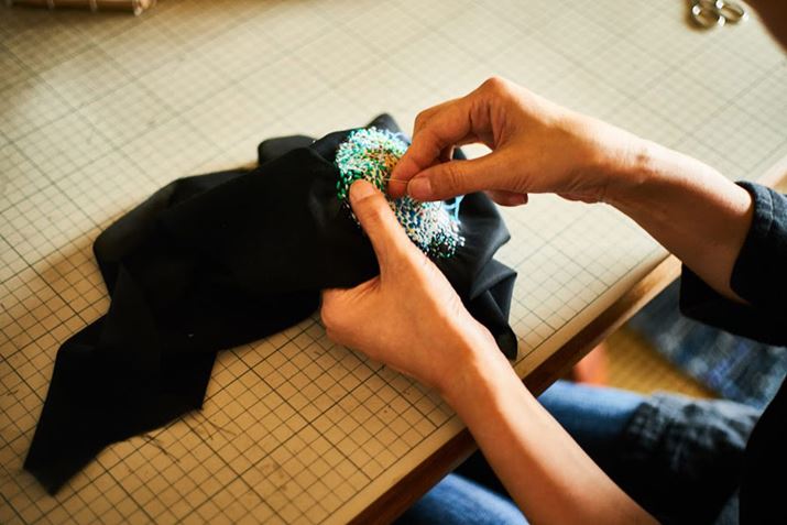 ちる子さんは、ステッチング(刺しゅう)作家さんでおられます。布だけでなく、皮革にも針と糸でステキな模様を表現していきます