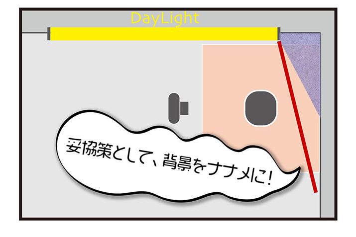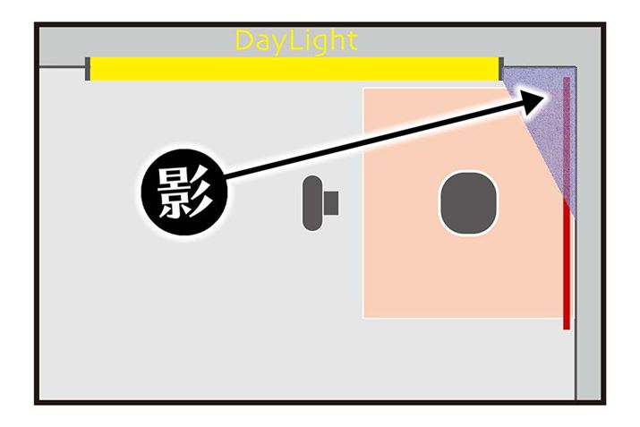 【掟1】「窓の光」を「サイド光」で使う場合、部屋の端の影に注意して撮影台をつくれ!