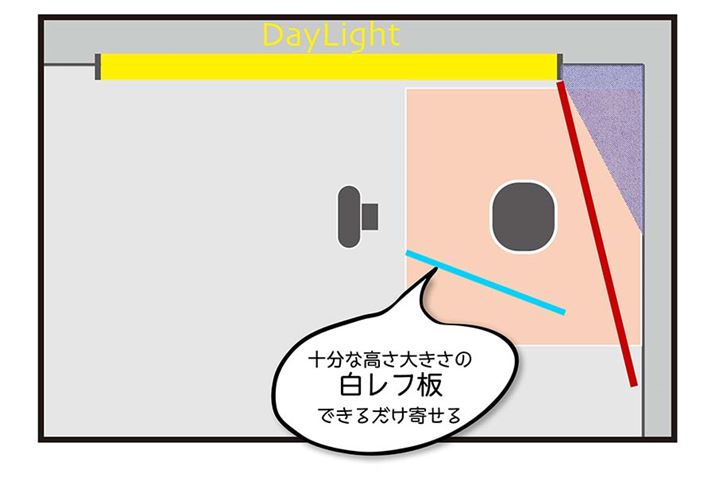 光源面とレフ板(白)の配置を「逆ハの字」にせよ!!