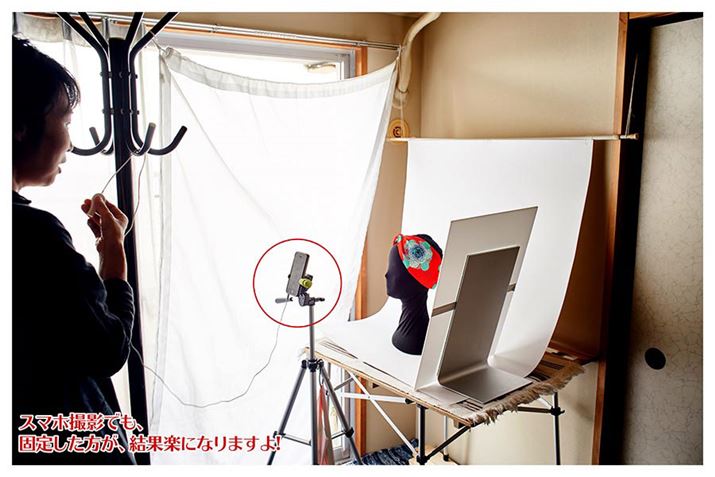 光源は窓からの外光。その近く、部屋の隅に撮影ブースを設置しておられます