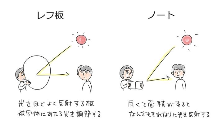 ヨシダ「たとえば、ある程度の大きさの白い紙があれば、レフ板の代わりにはなりますよね」