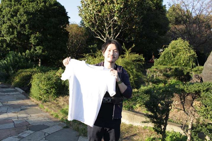 ヨシダ「それでは僕がTシャツを固定するんで、しえるさんに撮影してもらいましょうか」