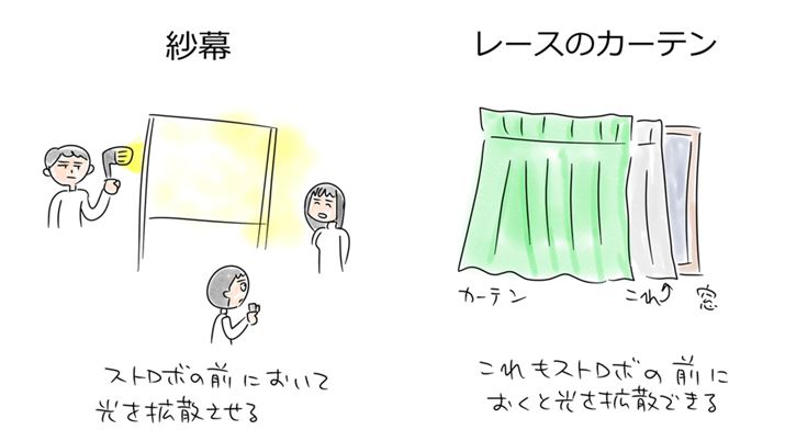 ヨシダ「レースのカーテンを使うと『紗幕(しゃまく)』という機材と同じ働きができると思います」