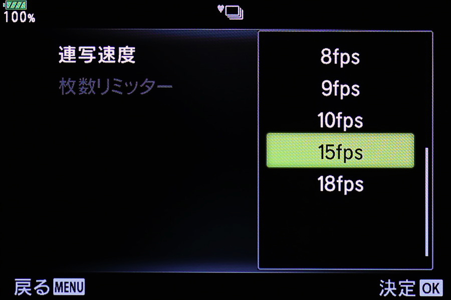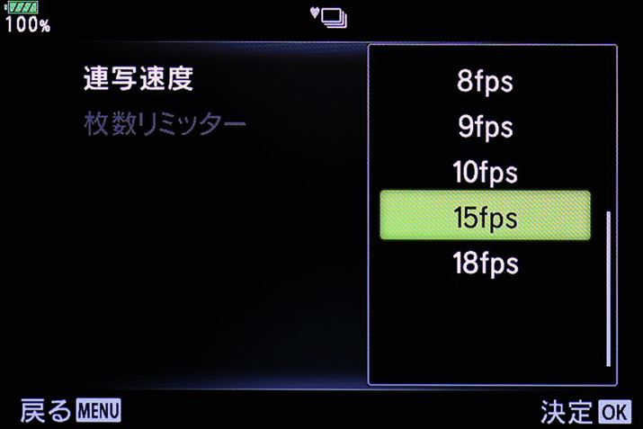 AF/AE追従で最高18コマ/秒の超高速連写(電子シャッター時)を実現。連写の持続性を考慮して連写速度を設定できるのもうれしい点だ