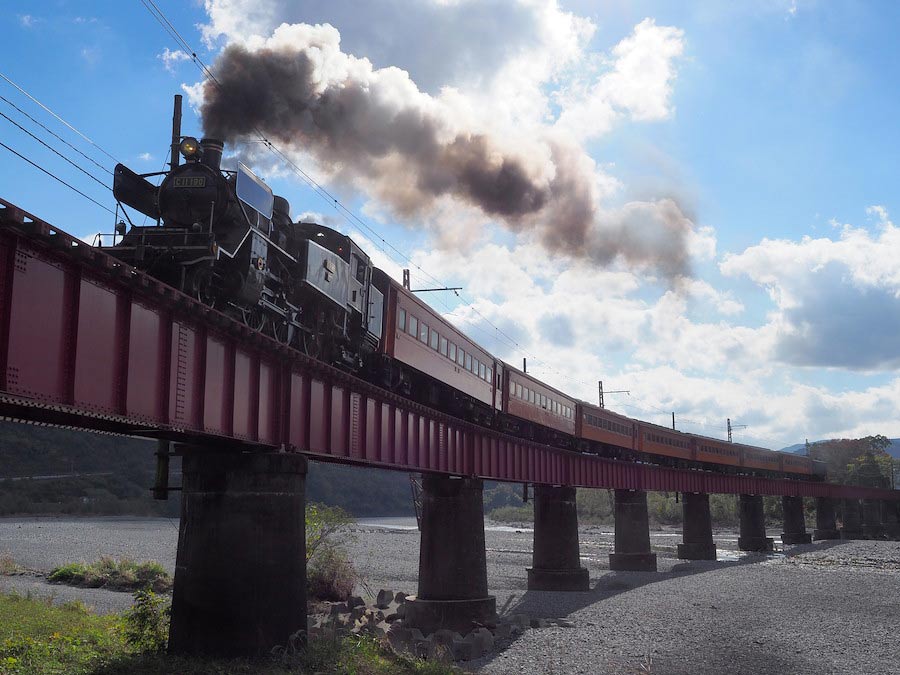 大井川鐵道でもっとも有名な撮影スポット・大井川第一橋梁で撮った作例。大井川本線下りのSL(C11形227号機)が画面内に入ってくるのを待って、AF/AE固定で60コマ/秒の超高速連写で撮影している。メカシャッターの15コマ/秒連写でもよかったとは思うが、今回の撮影ロケでSLを撮れるのはこの1回しかなかったため、SLの車両や黒煙など狙った配置で確実に撮れるように60コマ/秒連写を選択した。ボディ内RAW現像でコントラストを微調整して仕上げている。また、この作例はあえて逆光から狙った撮ったものになるが、気になるようなフレア・ゴーストは出ていない。「M.ZUIKO DIGITAL ED 12-40mm F2.8 PRO」には、オリンパス独自の「ZERO(Zuiko Extra-low Reflection Optical)コーティング」が施されており、フレア・ゴーストが発生しにくいレンズとなっているのだ。