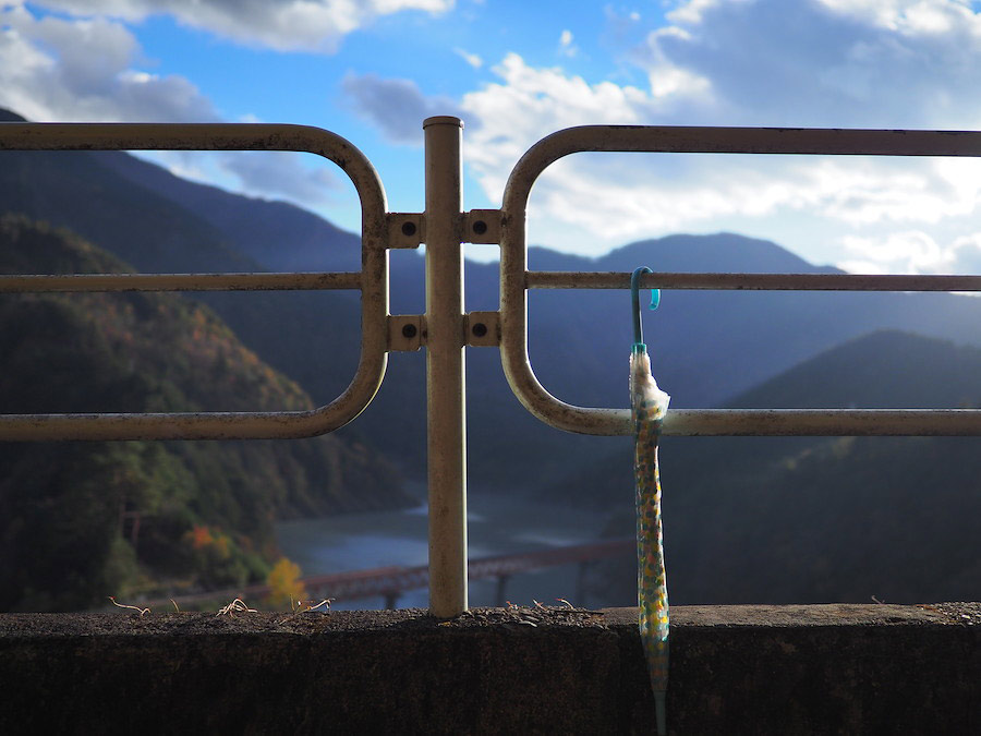奥大井湖上駅の撮影スポットで列車を待っているときに、置き忘れられた傘を見つけたので、「M.ZUIKO DIGITAL ED 17mm F1.2 PRO」にレンズを交換して撮影。開放での大きな背景ボケで立体感のある描写が得られた。絞り開放F1.2でシャッタースピードは1/12800秒。「E-M1 Mark II」は最速1/32000秒の電子シャッターに対応しているので、明るい屋外で大口径レンズの開放を活用したい場合でも、NDフィルターなしで適正露出が得られる。