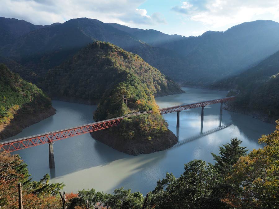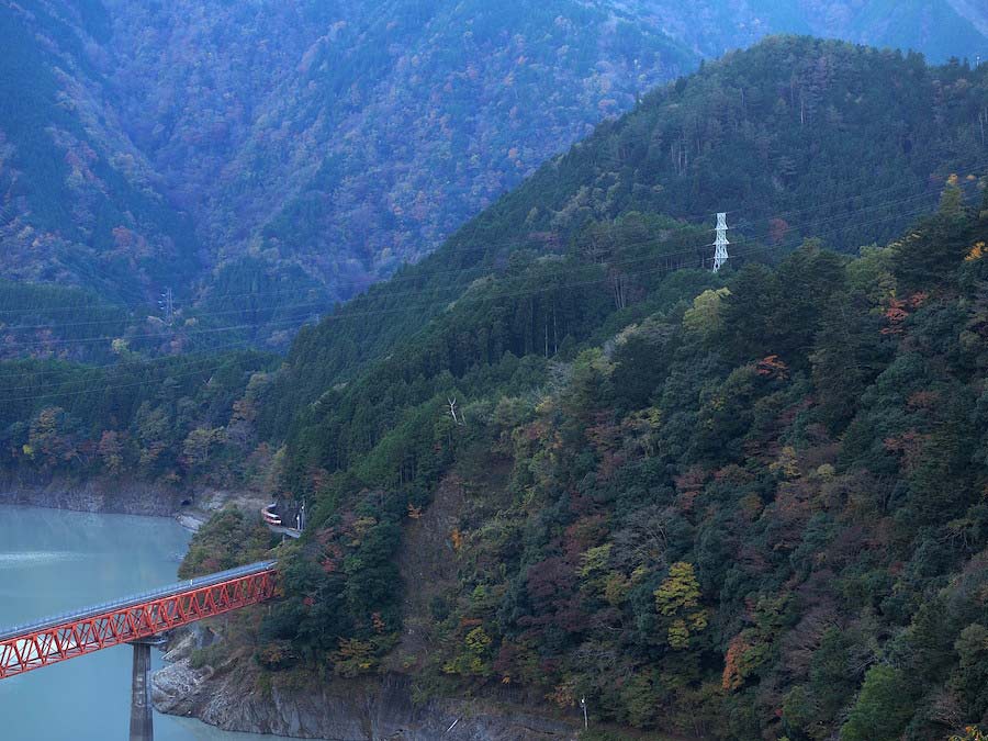 有名な撮影スポットから接岨湖(せっそこ)の真ん中にある秘境駅・奥大井湖上駅を撮影。ちょうど陽が傾いた時間帯だったため、サイドからの光が印象的な写真になった。こちらの作例では、階調をオートにすることで、黒つぶれを防ぎ、暗部の階調が豊かな画質に仕上げた。列車が駅に到着しているときを狙って奥大井湖上駅からこのスポットに向かったが、次の列車が駅についたときは残念ながら陽が落ちてしまい、この写真を作例としてセレクトした。